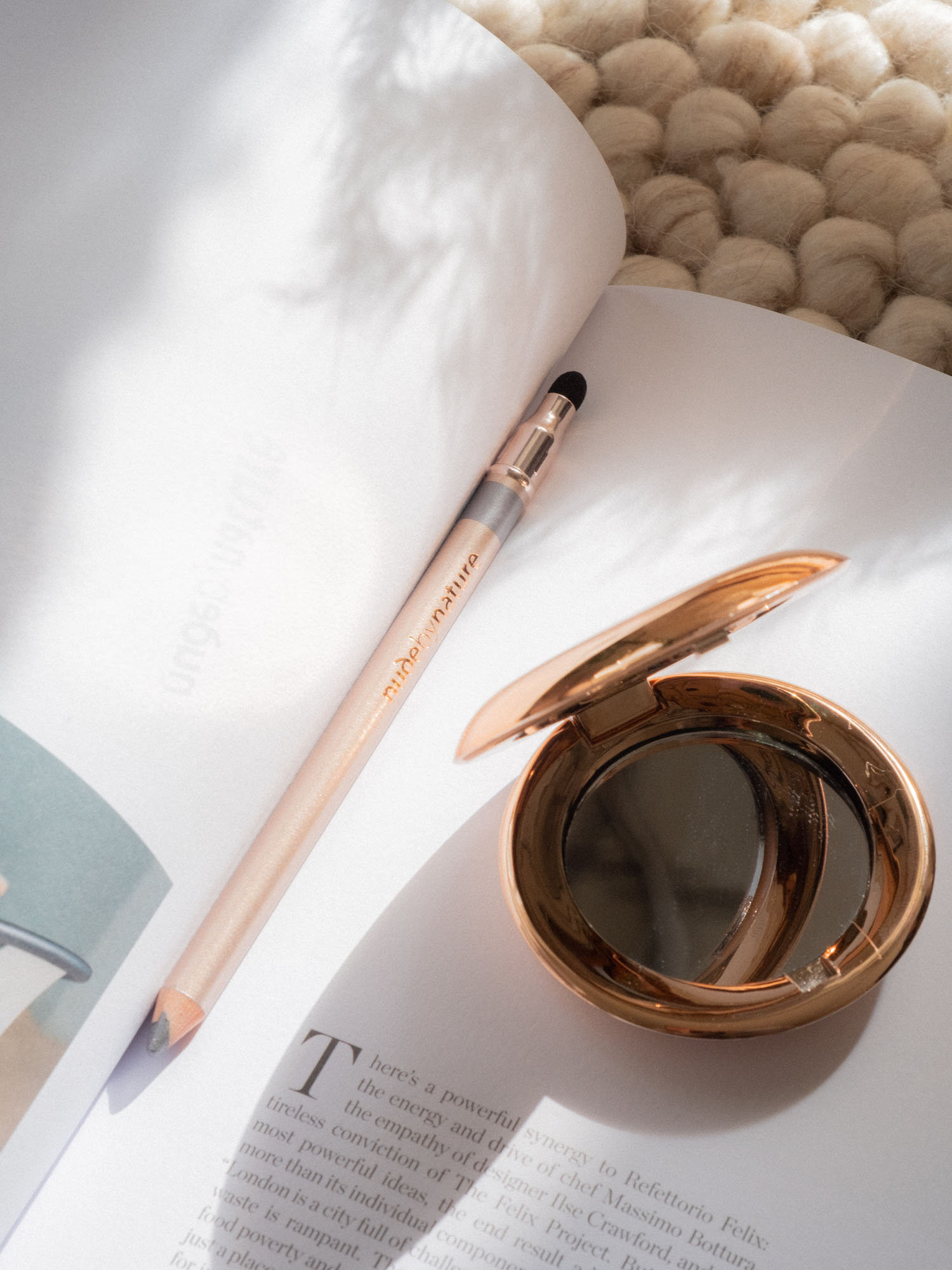 Bevorzugt experimentiere ich mit Augen-Make-ups. Da ist viel Potenzial für Kreativität und Platz für Farbe. Manchmal, also an Tagen wie diesen, wenn das Wetter sich von einer Jahreszeit in die andere ändert, die Farben der Umgebung und die Ausstattung der neuen Garderobe sich austauschen, packt mich die Lust, alles neu zu machen, die Comfort-Zone zu verlassen und ein neues “Elina typisches Make-up” zu tragen. Und ich muss sagen, das gelingt mir extrem gut und zwar mit der Eye Collection von Nude by Nature. Denn als das riesige Farbpaket den Kosmetikhandel erreichte, fragte ich mich erst ernsthaft, was man alles mit all diesen wundervoll funkelnden, aber auch matten Farben anfangen sollte. Jetzt weiß ich es, jeden Tag oder vielleicht auch jeden zweiten Tag einen anderen Look tragen.
