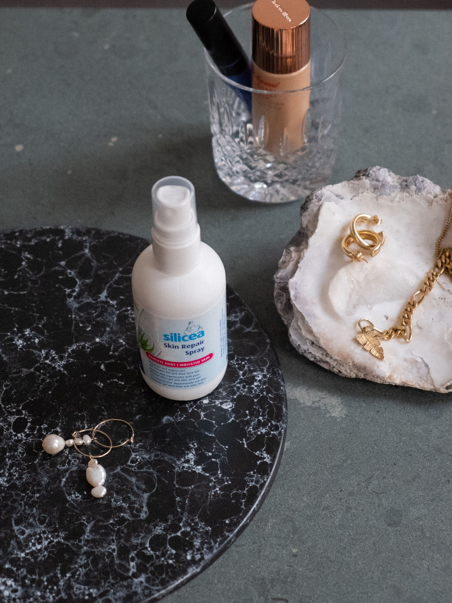 Face-Mists erfrischen nicht nur, sie spenden Feuchtigkeit und regulieren den pH-Wert der Haut, bringen sie in Balance und funktionieren außerdem wie ein Fahrstuhl. Alles, was drüber aufgetragen wird, kann viel tiefer in die Haut eindringen. Meine neueste Entdeckung ist das Skin Repair Spray von silicea. Silicea ist bekannt für viele Benefits und kann durch die Einnahme die Nägel, Haare und das Bindegewebe stärken. Das neue Spray beruhigt trockene Haut und sorgt durch die Formel aus rein mineralischem silicea Silicium-Gel und Aloe Vera-Gel für intensive Feuchtigkeit und Pflege. Gerade Aloe Vera ist ein leichter Feuchtigkeitsspender – beruhigt die Haut im Sommer nach dem Sonnenbaden oder hält im Winter die Haut schön feucht. Übrigens ist es ein Produkt nicht nur für uns Ladys: auch Männerhaut freut sich über diese erfrischende Pflege nach der Rasur. Pluspunkte für das Skin Repair Spray gibt es von mir auch noch, weil es vegan ist. Und die Textur: leicht gelig und sehr erfrischend. Mehr Infos findet ihr dazu sonst noch bei Silicea auf den Social Media Kanälen hier und hier.