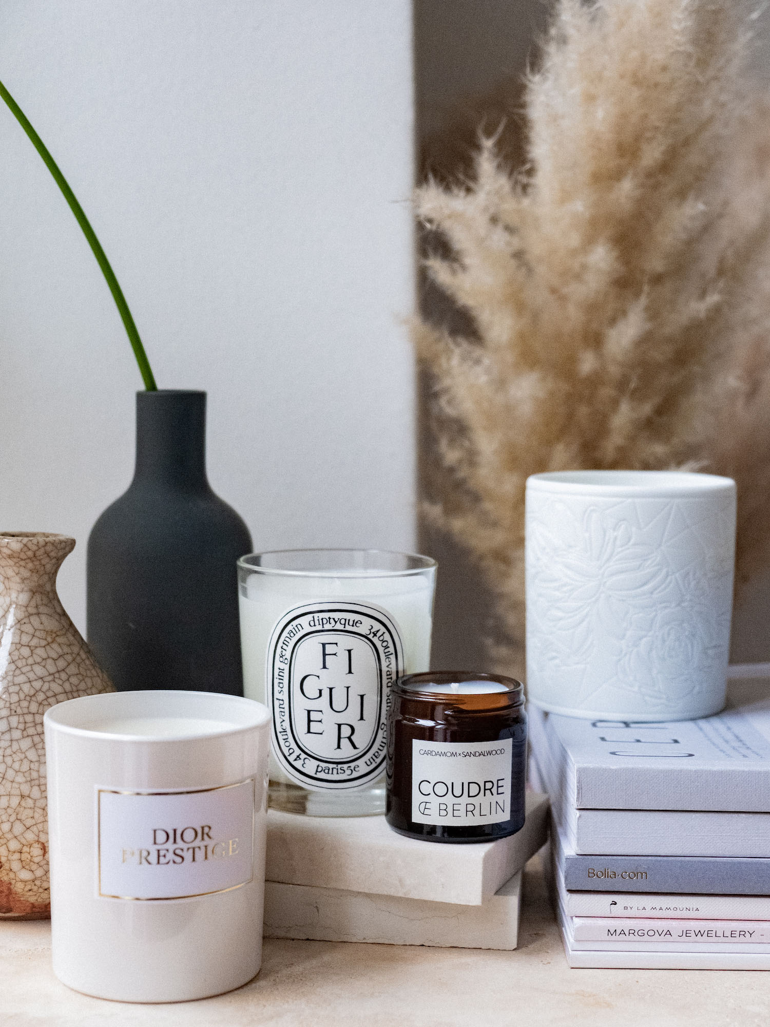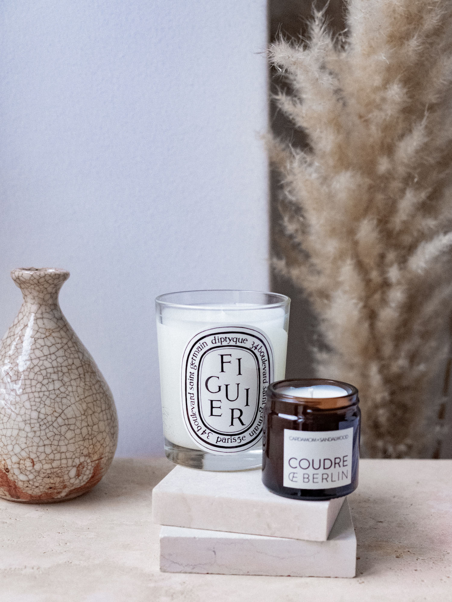 Hier meine ganz klare Empfehlung: Lass dich vor Ort beraten! Zwar finden wir online und in Magazinen wirklich wundervoll geschriebene Texte zum jeweiligen Dufterlebnis, aber nichts geht über eine ausführliche Beratung und natürlich auch das Probe-Schnuppern. Was andere vielleicht lieben, kann bei dir selbst schon wieder ganz andere Emotionen auslösen. In der diptyque Boutique in Berlin z.B. hast du die Auswahl zwischen über 50 Kerzen, die dich auf eine Reise durch Orte und Erinnerungen mitnehmen. Da fällt die Auswahl vielleicht schwerer, weil man sich nicht sehr leicht zwischen Bestsellern wie Figuier und Baies entscheiden kann, aber du kannst nochmal in entspannter Atmosphäre ganz tief in dir horchen, was dieser Geruch wirklich in dir auslöst und in welchem Zimmer du ihn vielleicht platzieren möchtest. Manche Düfte sind z.B. wie geboren fürs Schlafzimmer, weil sie einen mit Lavendel und Sandelholz sanft ins Traumland entführen. Andere Kerzen stelle ich am liebsten in den Eingangsbereich, da sie mich selbst und jeden Gast auf frische und freundliche Weise begrüßen. Bei dieser Auswahl kann dir gut geschultes Personal auch helfen und dir beratend zur Seite stehen. Sei dir außerdem bewusst, dass ein Duft sich immer noch anders im Raum entfaltet, als wenn du ihn nur gefangen im Wachs riechst.